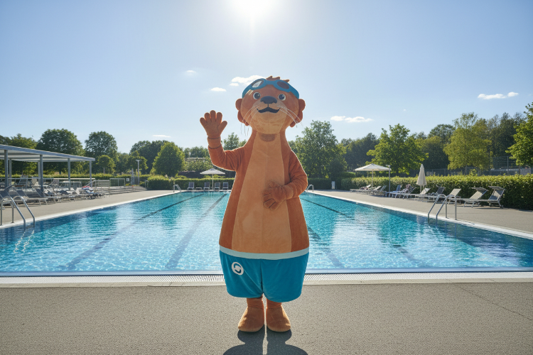 Ich bin Fiete, ein quirliger Fischotter! Komm in meine Schwimmschule. Ich begleite euch auf eurem Weg von Baby bis Bronze.
